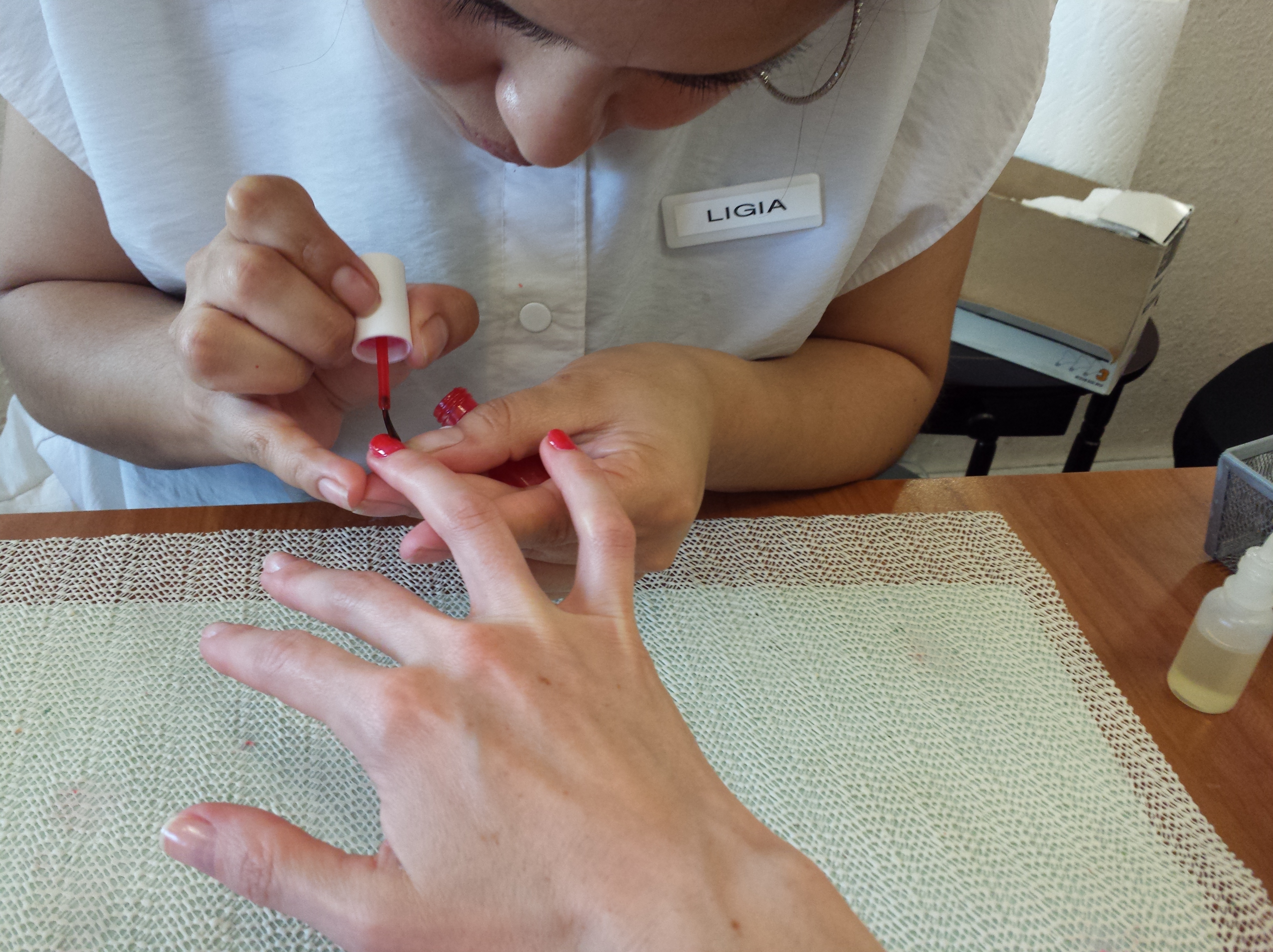 My manicurist, Ligia, painting within the lines much better than I could ever do. Yes, I took this photo with one hand.