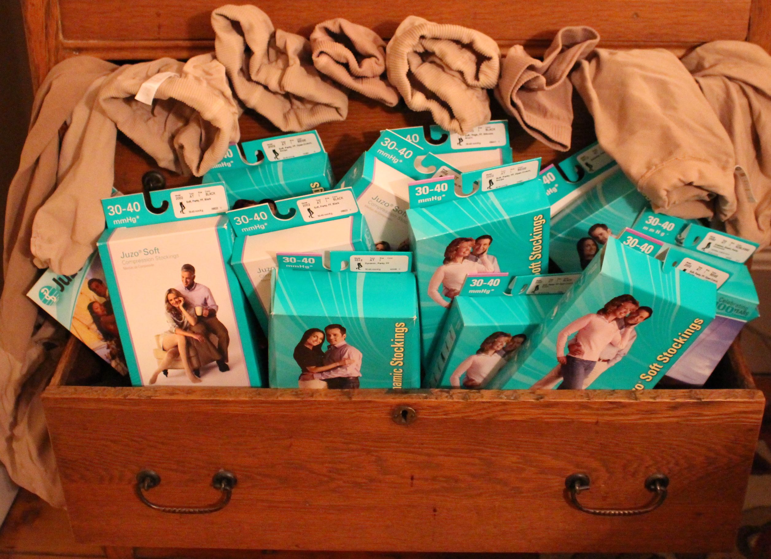 While this overflowing drawer of stockings may look like compression stocking heaven, resist temptation. Don’t hoard.